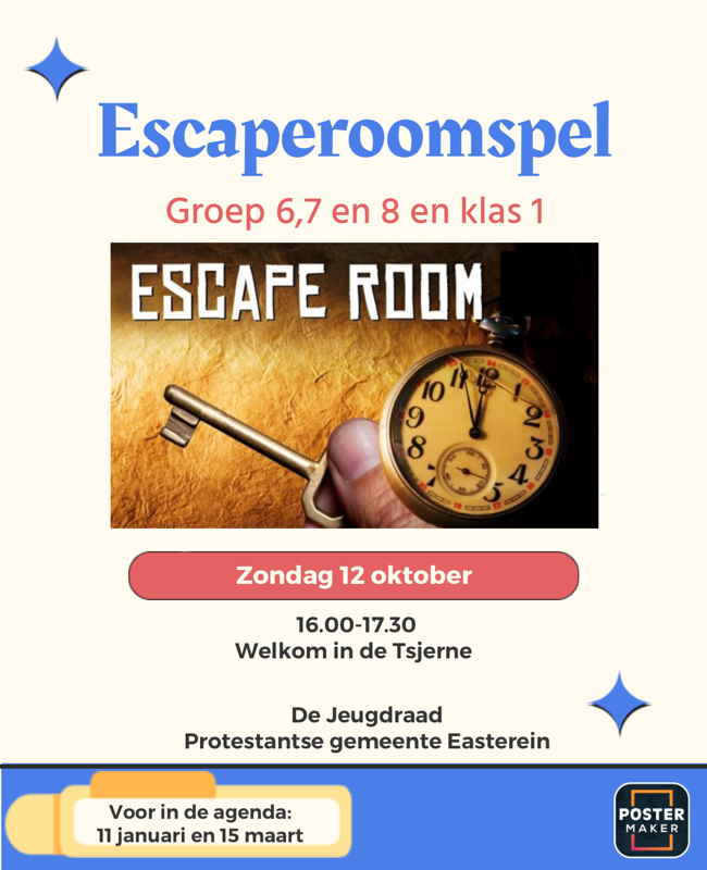 Escaperoom voor groep 6,7 en 8 op zondag 12 okt